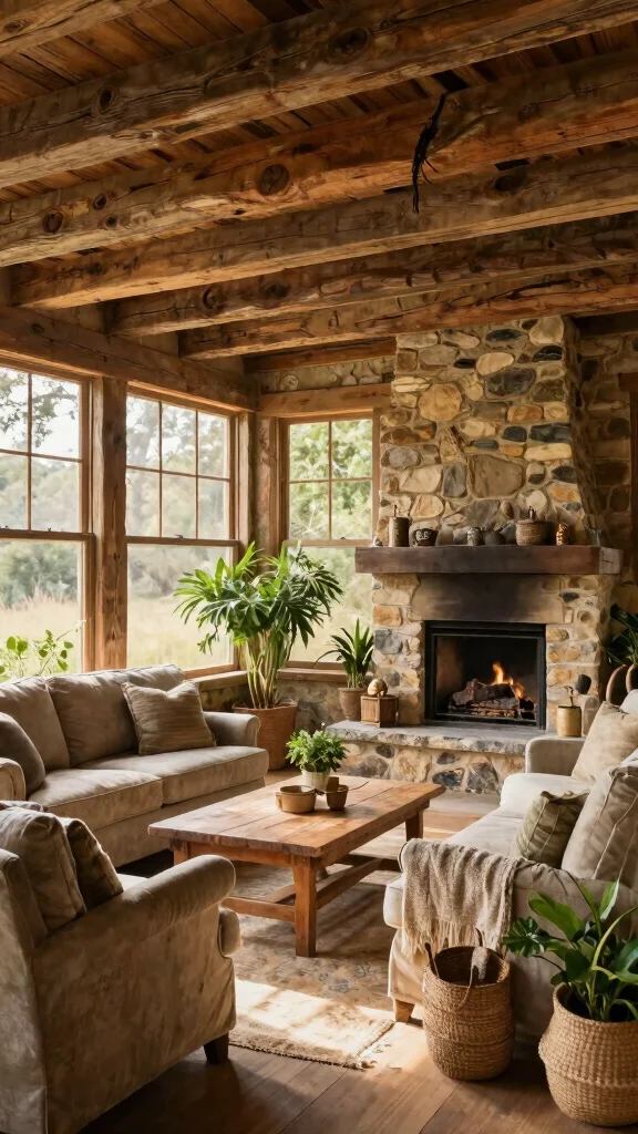 To bring this rustic aesthetic to life, you can easily incorporate budget-friendly options that donโ€™t compromise on style. Look for vintage or thrifted furniture pieces that add character, and fill the space with lush greenery to enhance the natural vibe. This style not only elevates your homeโ€™s appeal but also promotes a sustainable lifestyle.
