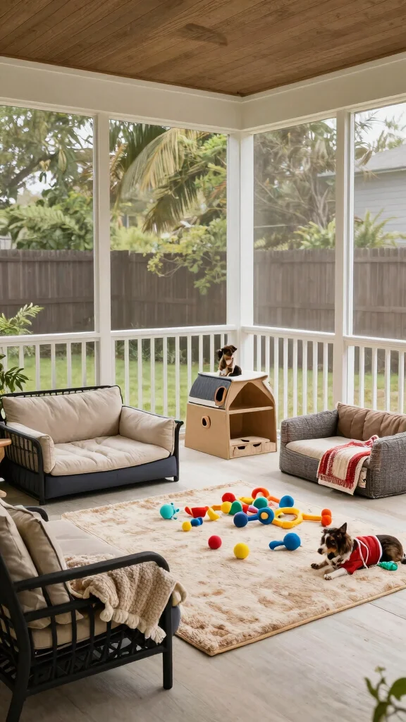 Create a pet-friendly space with durable fabrics and safe plants to ensure comfort for all family members.