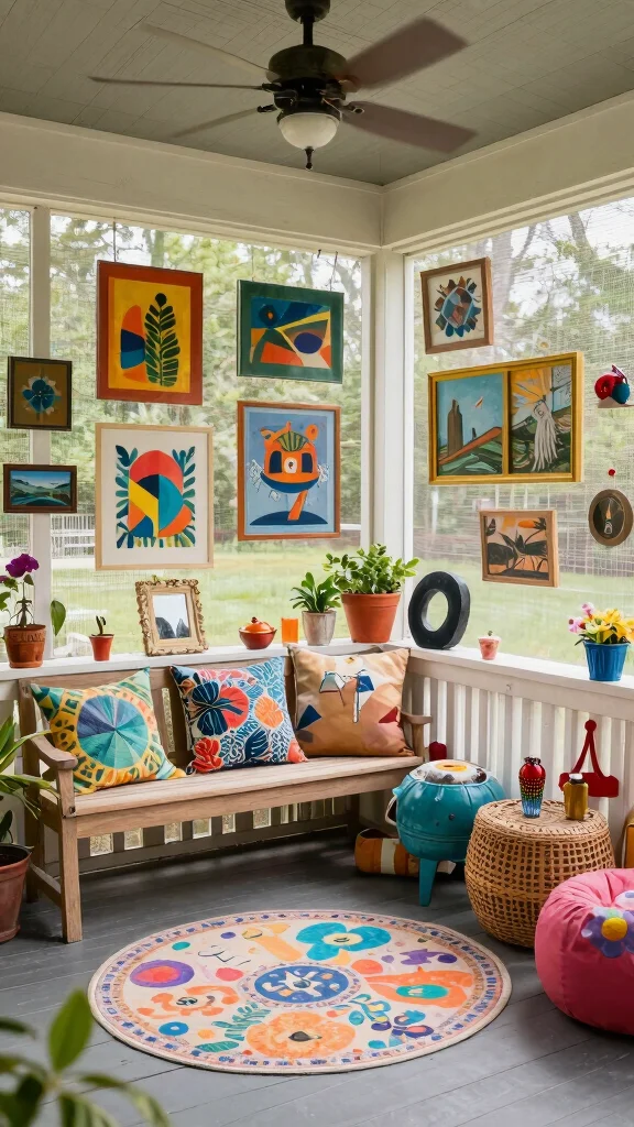 Incorporate unique artwork or handmade crafts to personalize your screened porch and showcase your style.