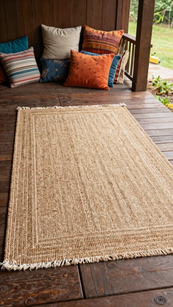 A textured rug can define your porch space and provide comfort underfoot as the weather cools. Select a rug that feels inviting and reflects the warmth of autumn with colors and patterns reminiscent of the season. A jute or woven rug contributes to the rustic feel while ensuring durability for outdoor use. Place the rug beneath your seating area or at the entry point to create a cozy atmosphere that encourages relaxation.