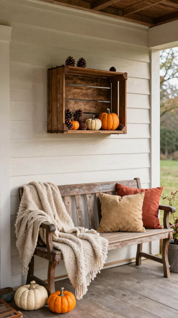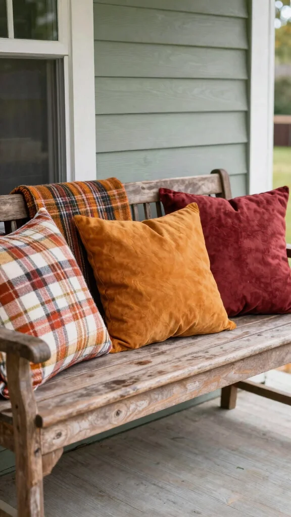 This cozy addition not only enhances your porch’s comfort but also invites your guests to enjoy the crisp fall evenings.