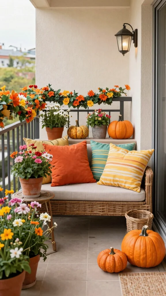 This approach keeps your balcony looking fresh and lively, inviting you to enjoy the beauty of each season.