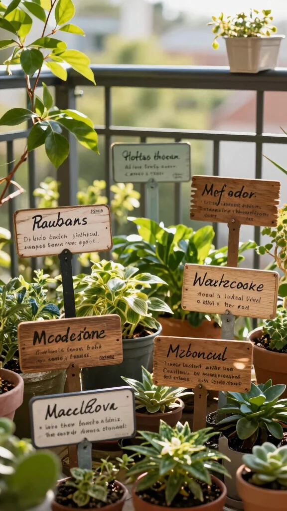 Infuse personality and practicality into your balcony with decorative plant labels! These labels not only help you remember your plants’ names but also add a charming aesthetic touch to your garden. Consider making custom labels using wood, metal, or stones that align with your balcony’s theme.