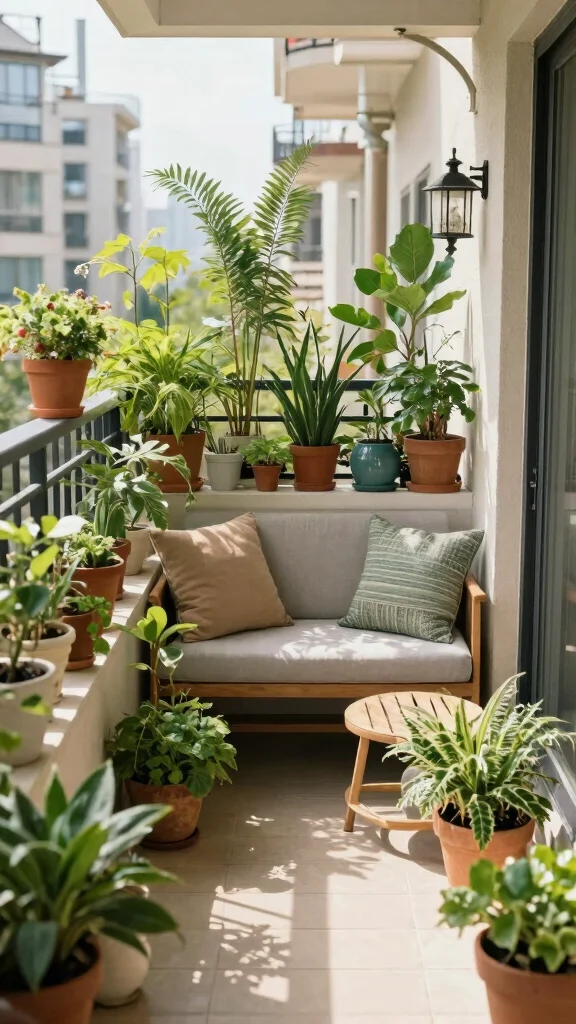 Fun fact: Odd-numbered plant groupings—think 3, 5, or 7 pots—read as balanced and inviting on tiny balconies. Pair them with a cohesive color palette and decorative pots to elevate your small balcony plant styling ideas into a charming, cohesive oasis.