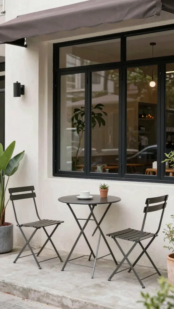 Incorporate shade options like a compact umbrella or wall-mounted canopy to extend comfort through the day, while keeping the footprint neat.