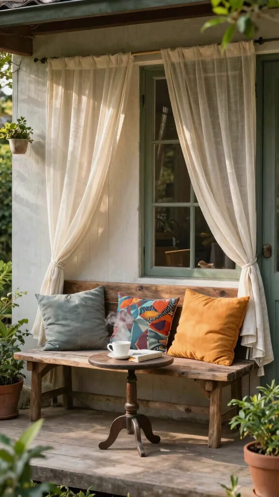 To create this warm atmosphere, choose a bench that fits your porch dimensions to avoid overcrowding. Layering cushions of different textures and patterns can add depth and interest, making the nook more appealing. You can also find budget-friendly cushions at local home stores or online, allowing you to express your style without breaking the bank.