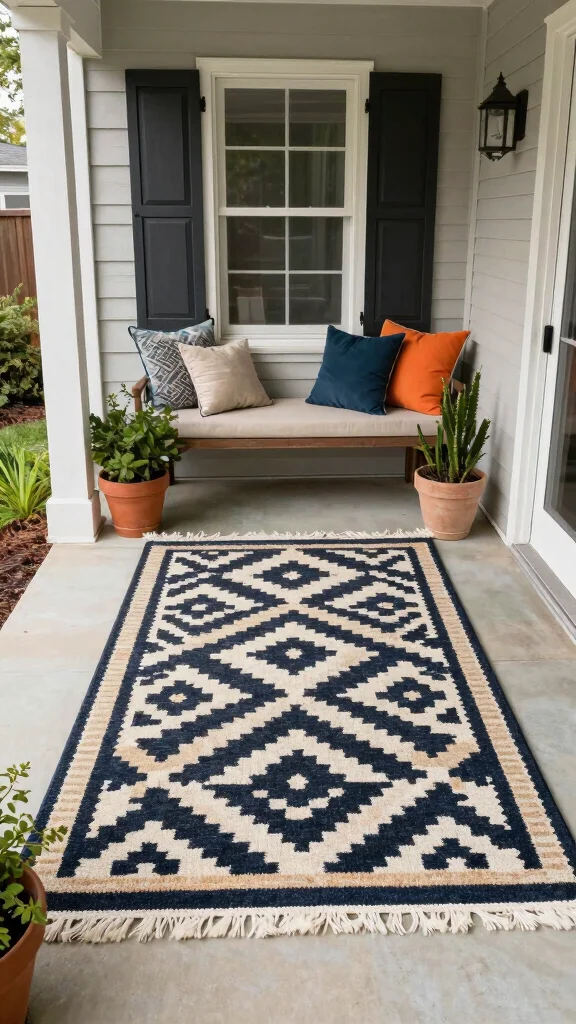 When choosing a rug, aim for a size that fits your porch layout without overcrowding the area. Look for weather-resistant materials that can handle spills and fading. Patterns like stripes or florals can enhance your porch’s personality and reflect your style.