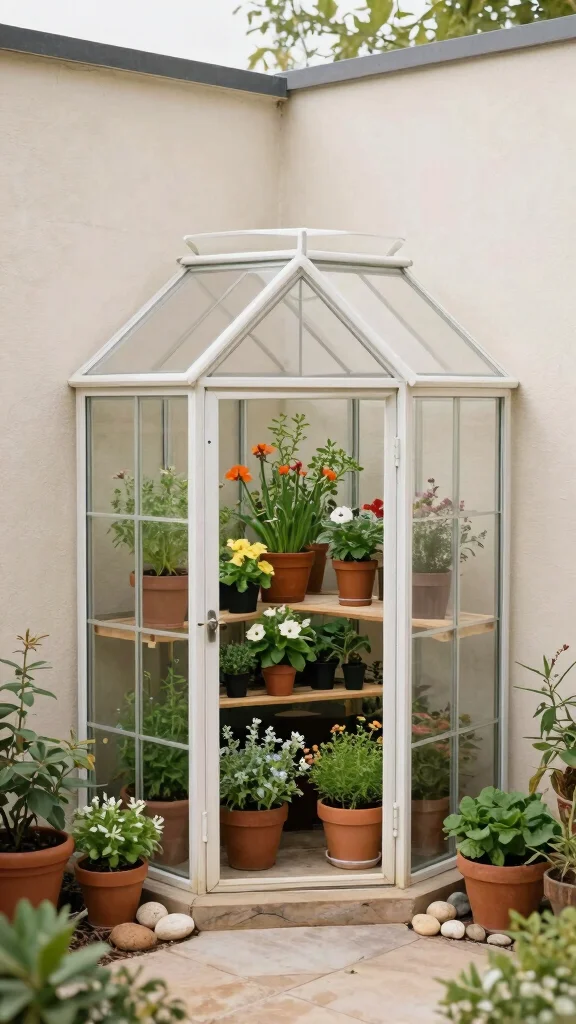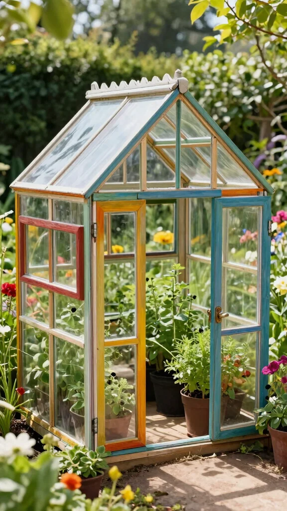 Create a recycled window greenhouse using old windows to build an eco-friendly structure for your plants.