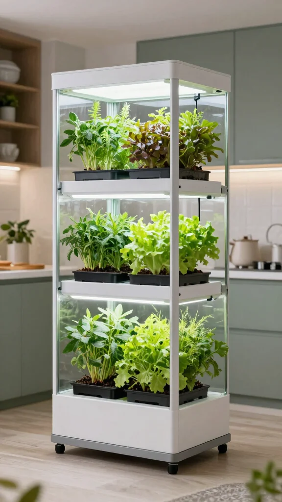 Absolutely. Pick a low-profile frame and clear panels; aim for neutral colors or wood tones that blend with decor. Hide cords and use a discreet LED grow light or a small hydroponic kit tucked away. Place it near a south-facing window or inside a cabinet corner to keep it tidy. Try indoor gardening ideas like herbs on a sunny windowsill, baby greens on a narrow shelf, and compact peppers in a corner unit. Ventilation matters, so include a small exhaust fan or a passive vent. The key is to balance aesthetics and function so the space feels intentional, not cluttered.