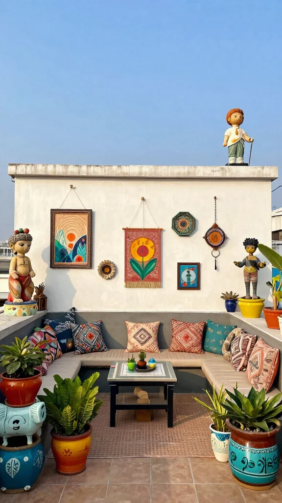 Incorporate outdoor-friendly art that withstands the elements and functional pieces like colorful planters that serve multiple purposes. This personal touch can make your terrace feel like a true sanctuary.