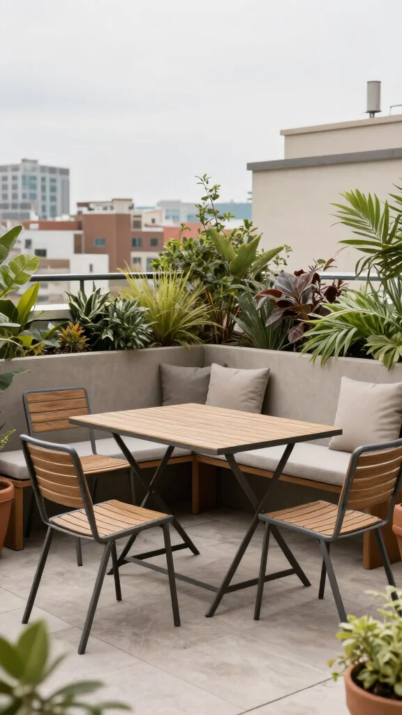 Think of your rooftop as an extension of your living room. Start with space-saving furniture—folding chairs, nesting tables, and built‑in benches with hidden storage help keep the floor clear.