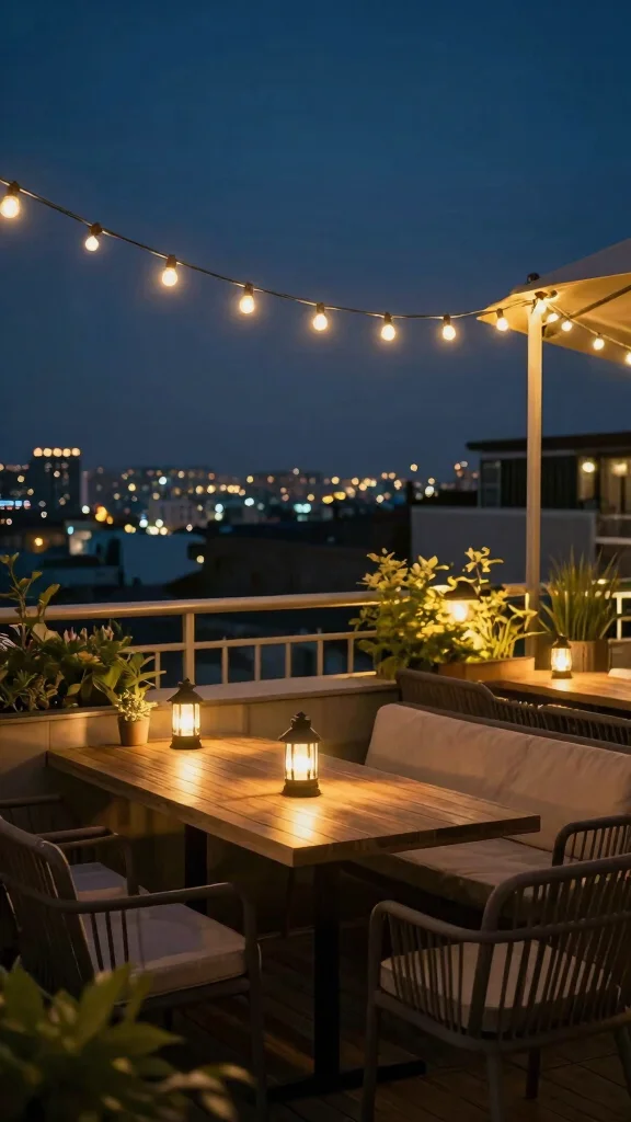 With the right lighting, your rooftop will transform into an enchanting retreat during the night.