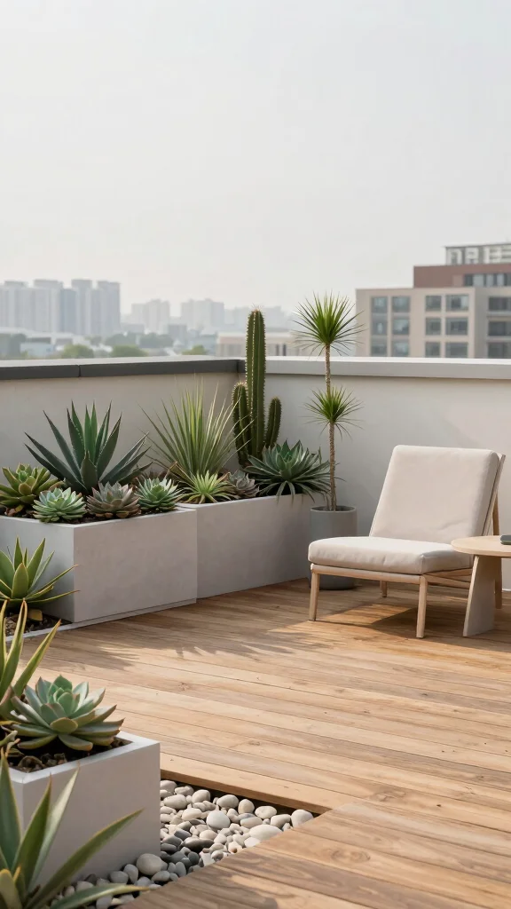 For terrace garden design rooftop ideas, a minimalist retreat proves that less can be more. Choose low-maintenance succulents in geometric planters, keep the color palette neutral, and watch your rooftop become a serene, mindful retreat.