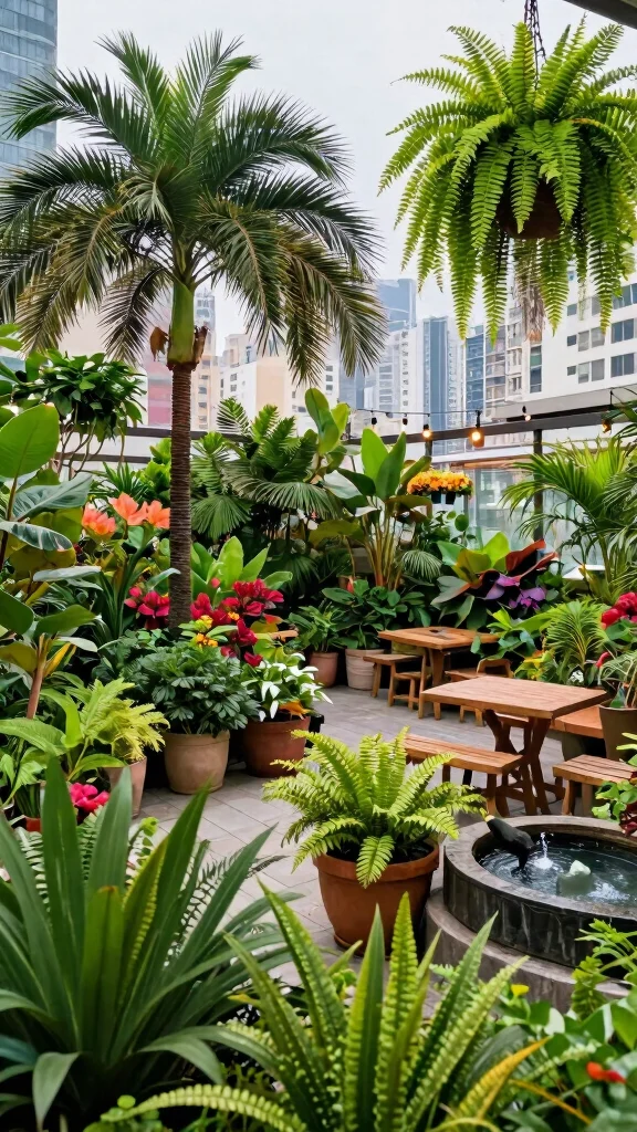 Create an urban jungle on your rooftop, filled with an abundance of greenery and lively colors. This design thrives on diverse plant choices, from towering palms to cascading ferns, resulting in a vibrant outdoor oasis that feels alive and welcoming. Layering plants of varying heights enhances visual depth and draws the eye across your garden.
