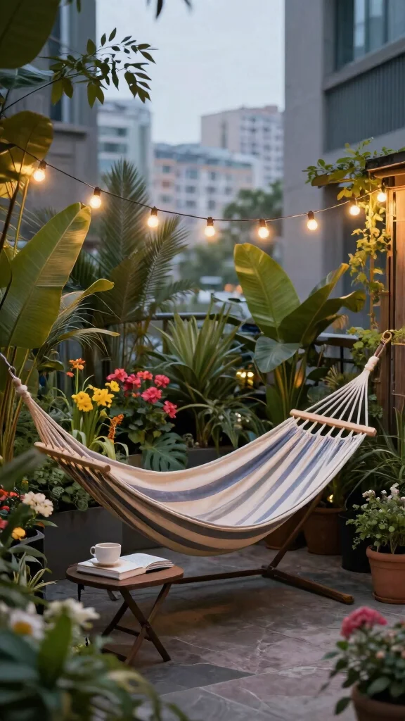 For styling your nook, choose a comfortable chair or hammock to lounge in and surround it with potted plants and hanging planters. Soft lighting, such as string lights, can elevate the ambiance during the evenings.