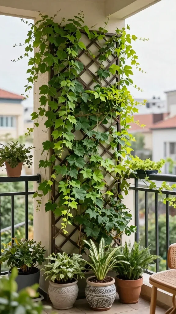 Vertical trellises with climbing plants can turn your balcony into a vibrant garden, enhancing your outdoor living experience.