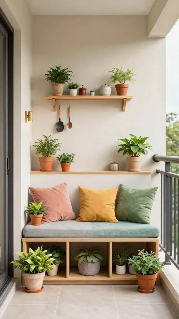 Fun fact: vertical storage on a tiny balcony can reclaim up to 30% more usable space. A storage bench doubles as seating, while slim cabinets keep cushions and tools neatly in reach. Pro tip: for tiny apartment balcony design ideas, mix multifunctional furniture with wall shelves to maximize every inch.