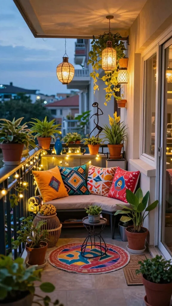 Good lighting can dramatically enhance the ambiance of your balcony, transforming it into a cozy retreat after dark. Consider a mix of fairy lights, solar lanterns, and LED string lights to create a magical atmosphere. Solar-powered options are eco-friendly and require no wiring, while LED lights can highlight your plants and decor beautifully.