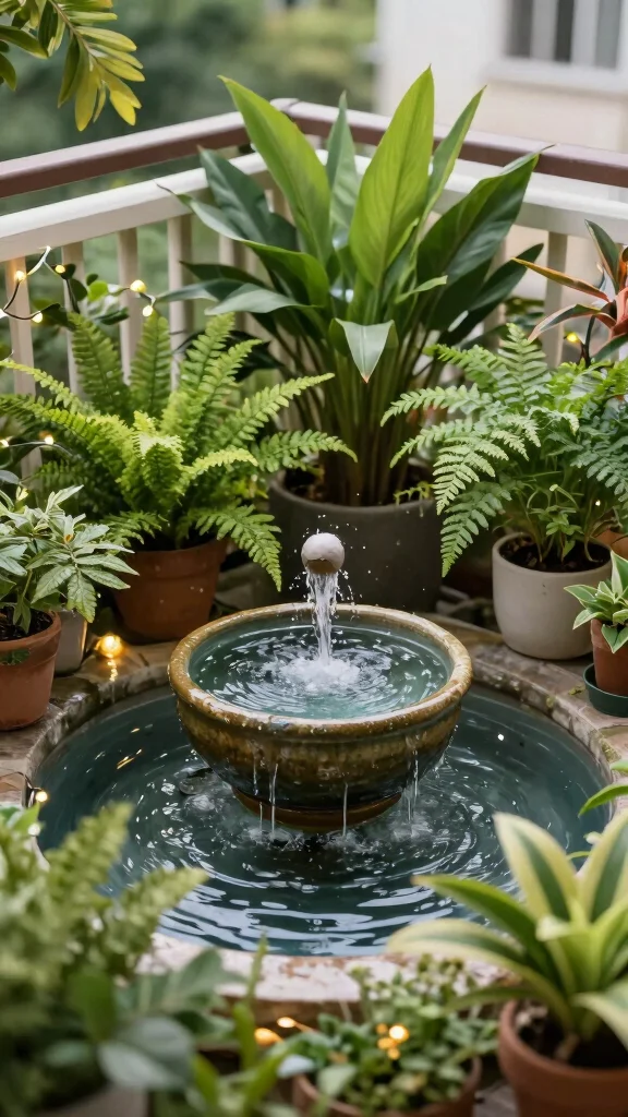 A water feature can transform your balcony into a refreshing escape, inviting peaceful moments and enhancing your urban garden experience.