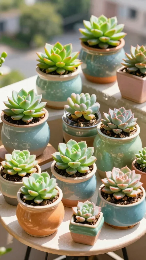 Succulents not only beautify your space but also require less water, making them environmentally friendly choices that contribute to a tranquil balcony atmosphere.